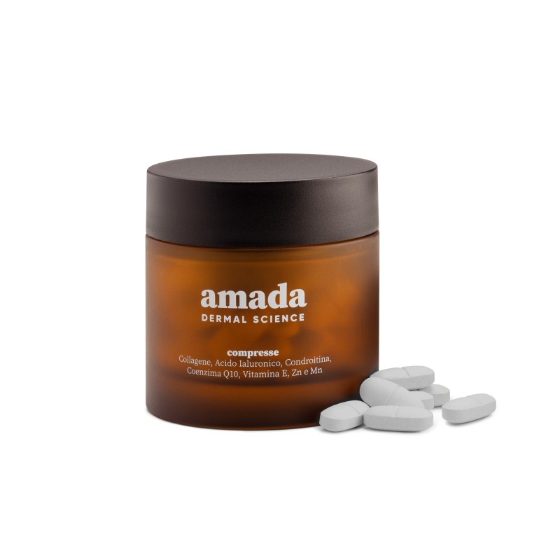 Amada COMPRESSE® integratore anti-aging è l’aiuto dall'interno per una pelle più sana, giovane a luminosa. Contiene una miscela unica di sostanze attive altamente biodisponibili per combattere i segni dell’invecchiamento e ridurre la comparsa di linee sottili e rughe. Utile nella preparazione e follow up dei trattamenti di medicina estetica, è parte integrante del trattamento antiage della linea Amada.