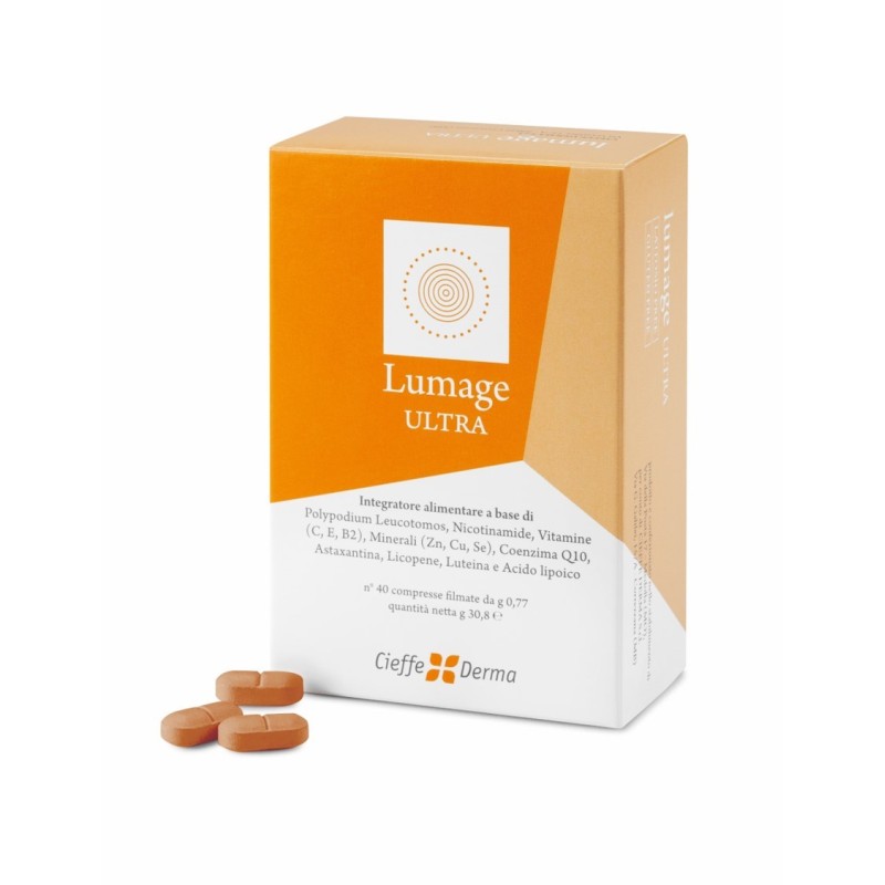 Lumage Ultra è un integratore ricco di sostanze utili a prevenire i danni fotoindotti della pelle come Eritemi, macchie solari, invecchiamento cutaneo precoce.